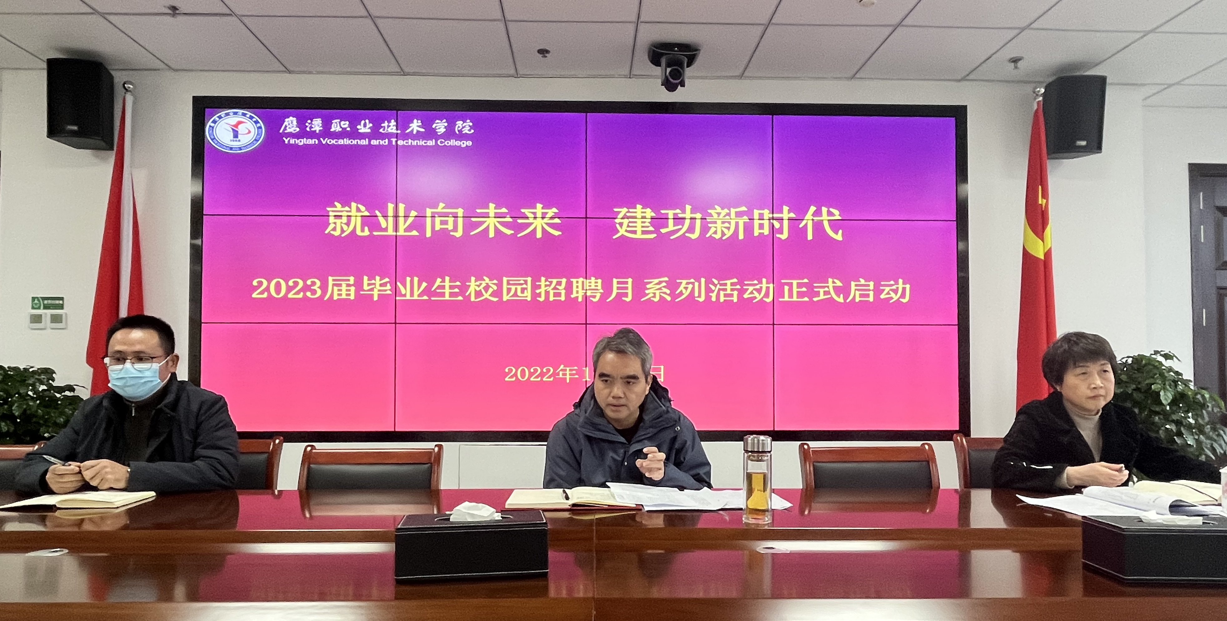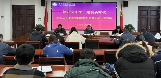 为深入学习贯彻二十大精神,落实中央和省政府“稳就业”“保就业”决策部署,根据教育部和省教育厅有关文件精神,做好beat365官网2023届毕业生就业工作,坚持“早谋划、勤调度、强落实、重成效”的总方针,2022年12月6日,beat365官网召开2023届毕业生校园招聘月系列活动启动仪式。院长易想春、副院长夏翠英、副院长王捷,以及招就办、教务处、学工处、系部负责人、系部书记和班主任(辅导员)出席启动仪式。