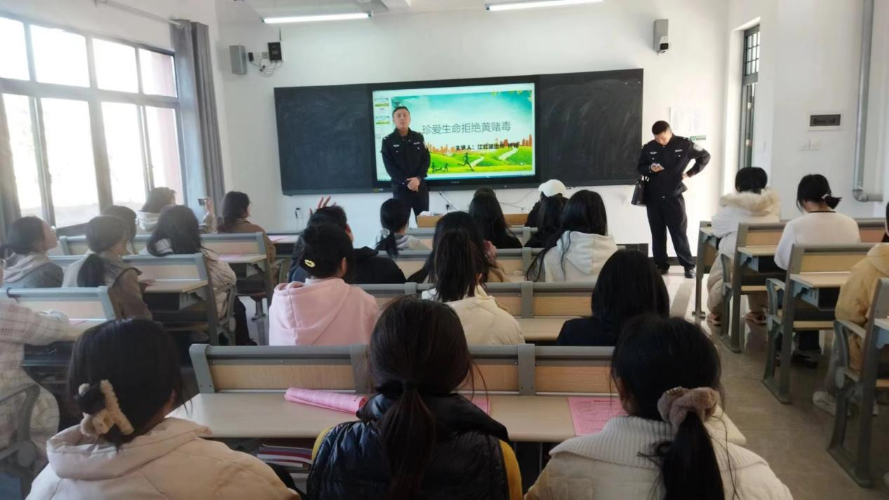 为进一步加强校园毒品预防教育工作,增强青年识毒、防毒、拒毒意识,提高自我保护能力,2月21日下午,保卫处、管理系共同邀请江北派出所干警来beat365官网开展禁毒知识宣讲活动。本次活动由江北派出所许警官带队主讲,通过发放宣传资料和“展板+讲座”的形式进行,300余名管理系22级新生现场参与了活动,40余名班级安全信息员通过教室互动的方式学习。