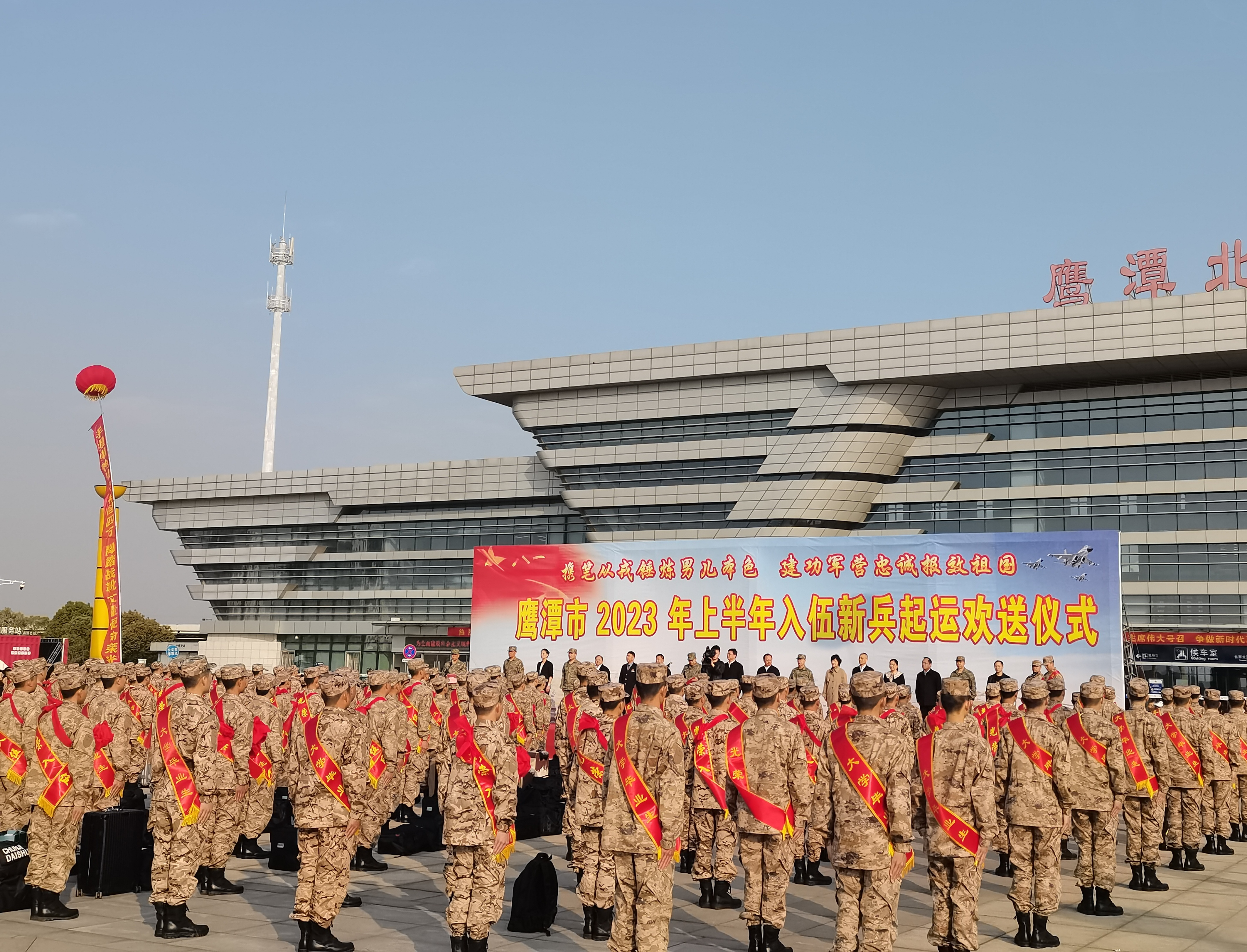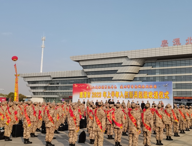 喜迎送兵季,好汉赴军营。3月16日上午,鹰潭市2023年上半年入伍新兵起运欢送仪式在鹰潭北站广场隆重举行。锣鼓喧天、彩球飞舞,市委、市政府、军分区领导和广大家长、市民,一起为全市新兵送行。鹰潭军分区首长寄语鹰潭新兵,磨练本领、铸就忠诚,努力做“有灵魂、有本事、有血性、有品德”的新时代革命军人;扎根军营、建功立业,努力成为让父母和家乡骄傲的人民子弟兵。