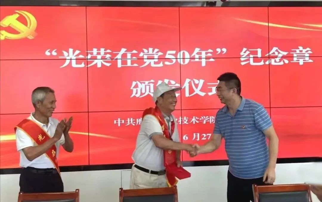 沉甸甸的纪念章,熠熠生辉,意义非凡!“光荣在党50年”代表着一种宝贵的精神,承载着老党员们的奋斗荣光。学院党委号召广大党员要向老党员学习,坚定理想信念,坚守初心使命,对党忠诚,立足岗位、创新实干,握紧新时代的“接力棒”,在接续奋斗中让红色基因薪火相传,为奋力书写学院高质量发展新篇章贡献智慧和力量。