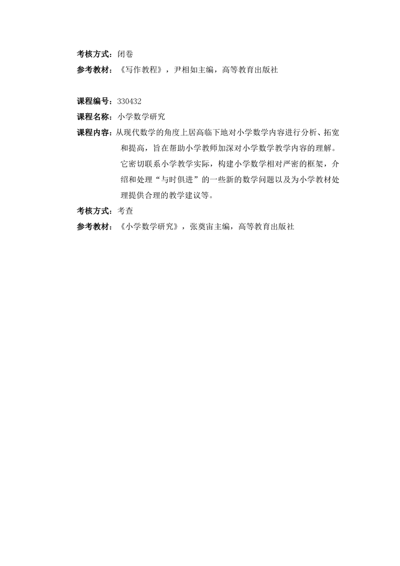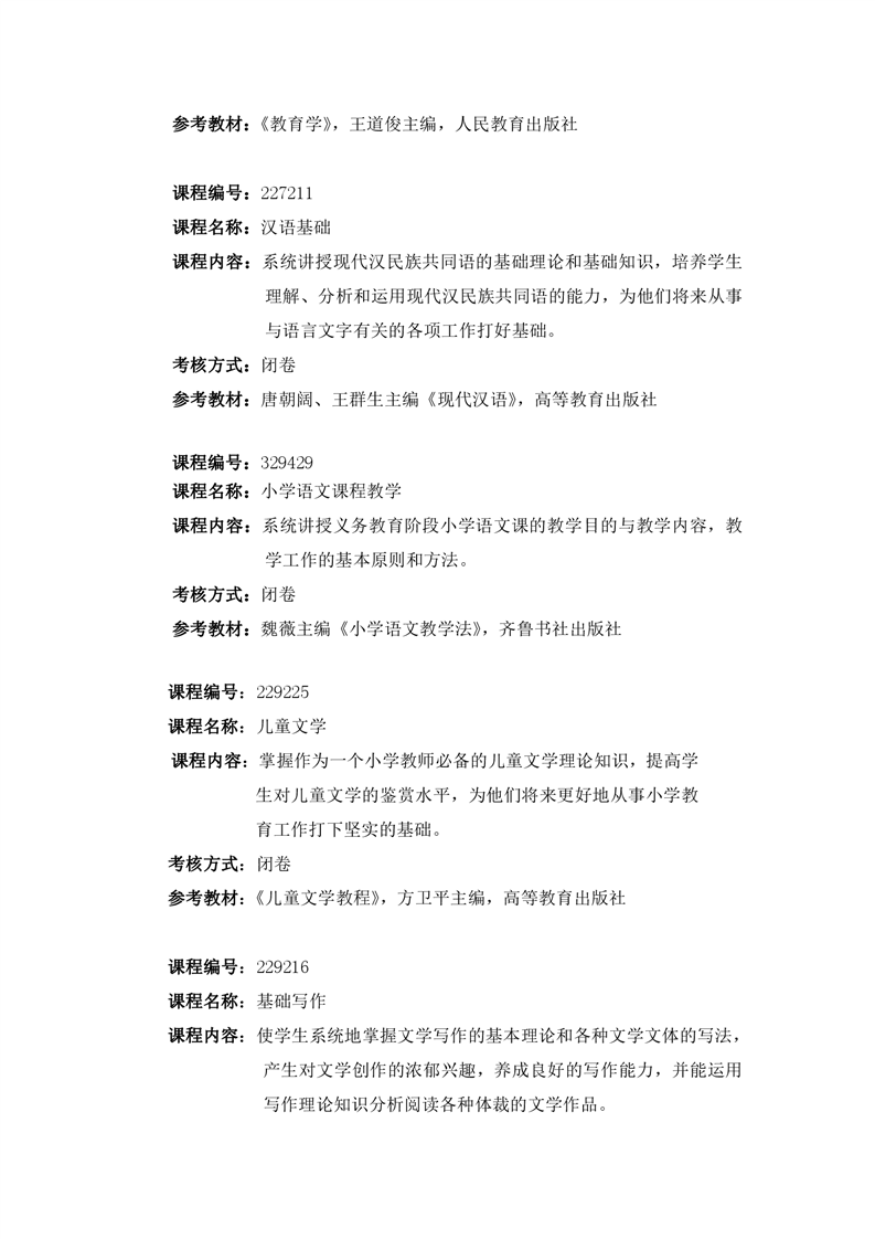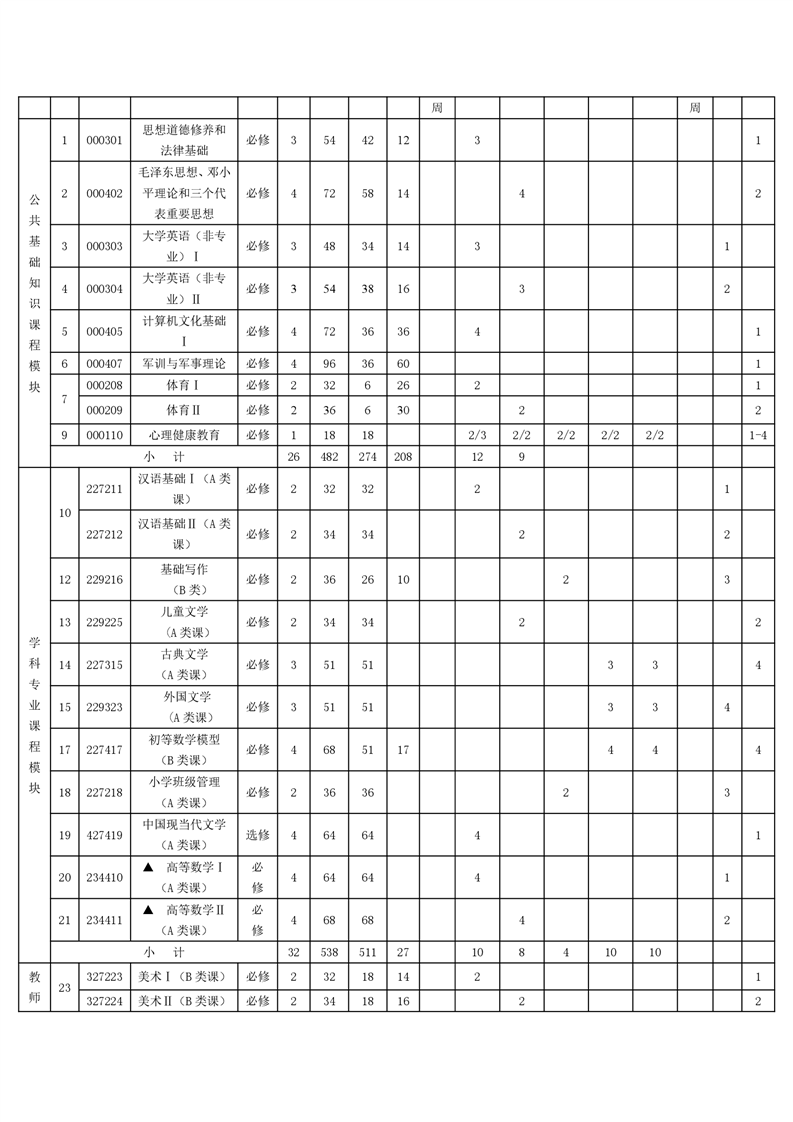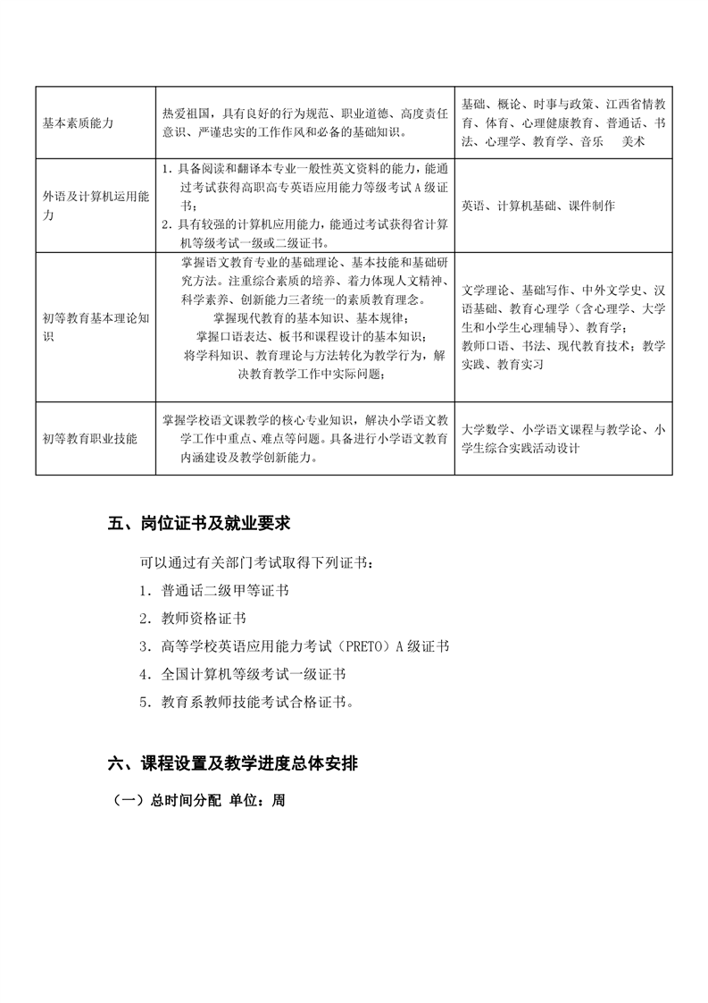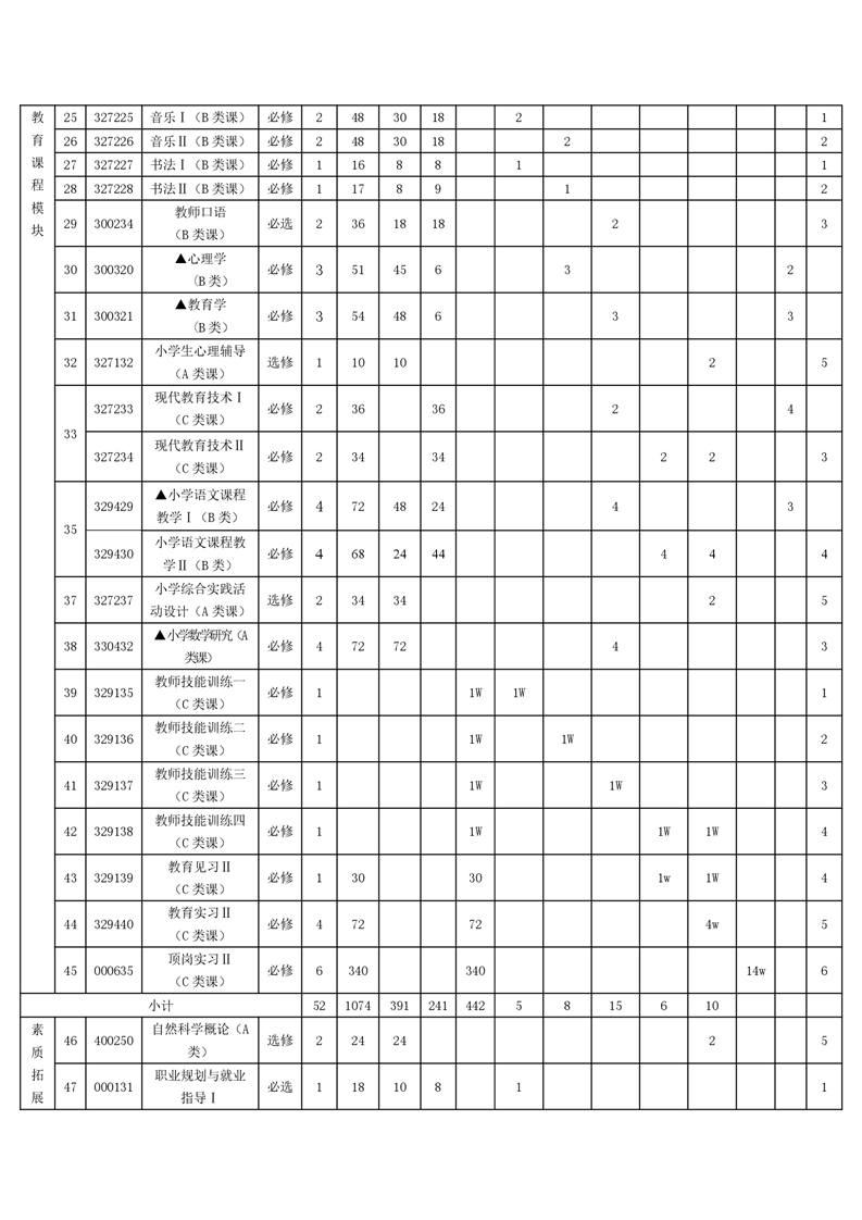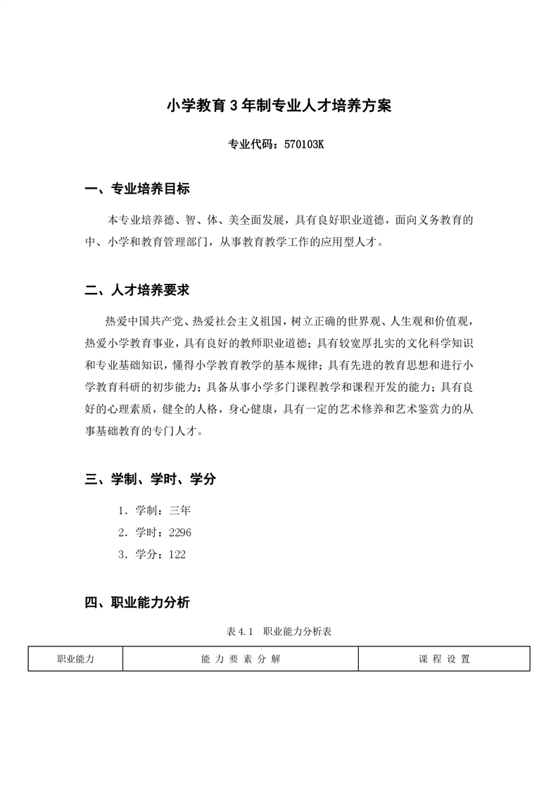 小学教育人才培养方案