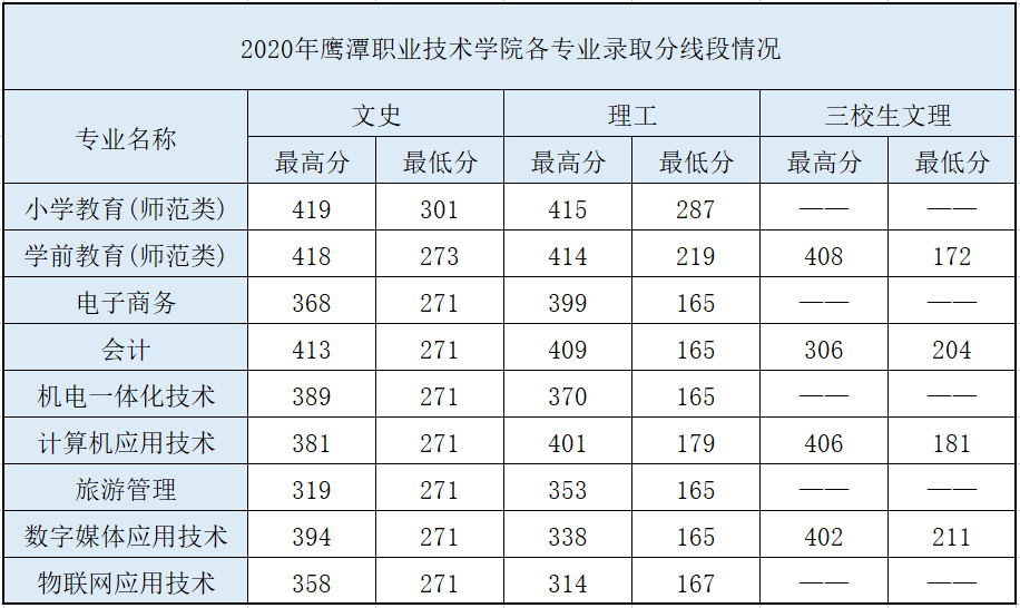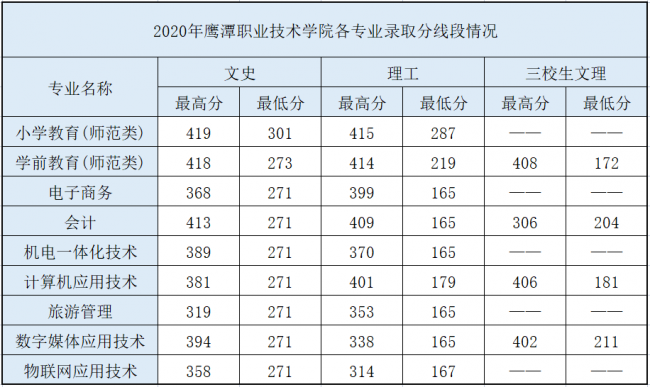 2020年分专业录取线情况
