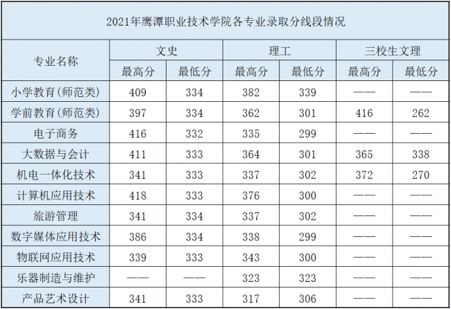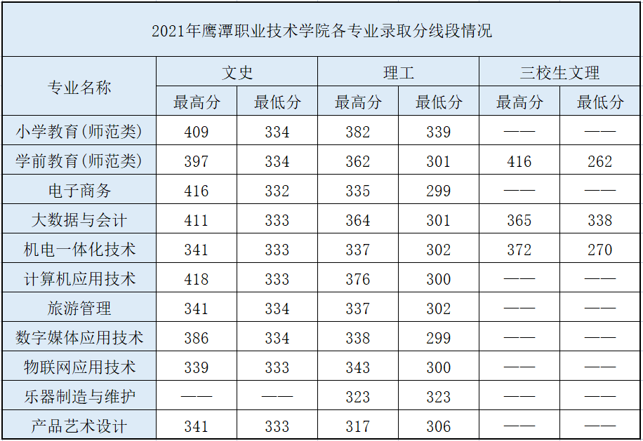 2021年分专业录取线情况