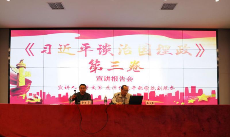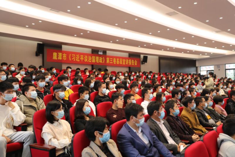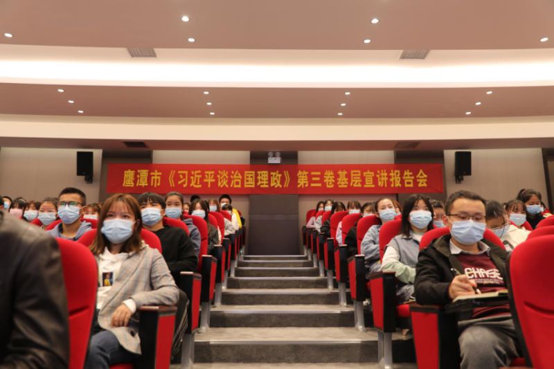 为学好用好宣传好《习近平谈治国理政》第三卷,推动习近平新时代中国特色社会主义思想入脑入心入行,切实提升广大师生工作学习热情, 10月20日下午,学院在2号教学楼报告厅举办《习近平谈治国理政》第三卷宣讲报告会,市委宣讲团成员、鹰潭红旗干部学院副院长车文军作宣讲报告。学院党委副书记俞万华主持会议,全体教师和学生代表300余人到场聆听。
