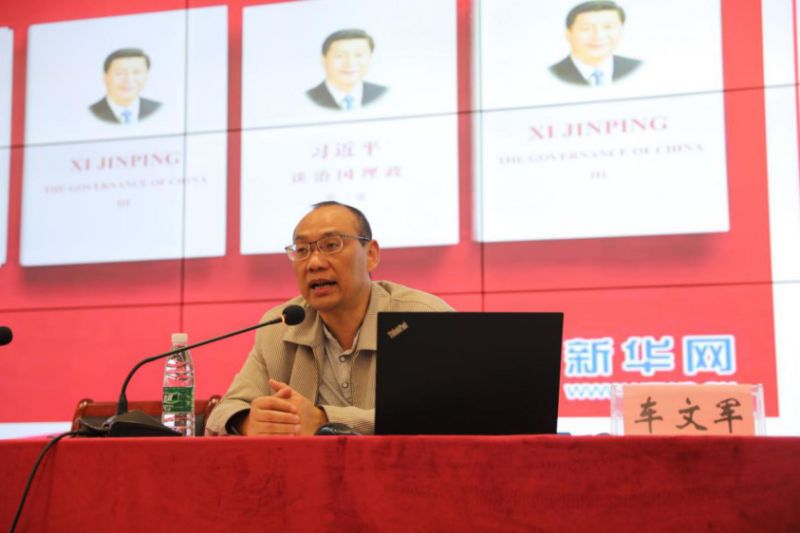 宣讲会伊始,车文军教授分别从时代背景、根本主题、核心主线、哲学方法、根本观点、内在逻辑、主要特点、主要价值等角度,着重阐释《习近平谈治国理政》第三卷所涉及的核心要义、重要内涵及内在逻辑,提高大家对《习近平谈治国理政》的认识。车教授的宣讲报告不仅内容丰富、语言生动,而且例子鲜活、深入浅出,给在座的师生留下深刻印象。